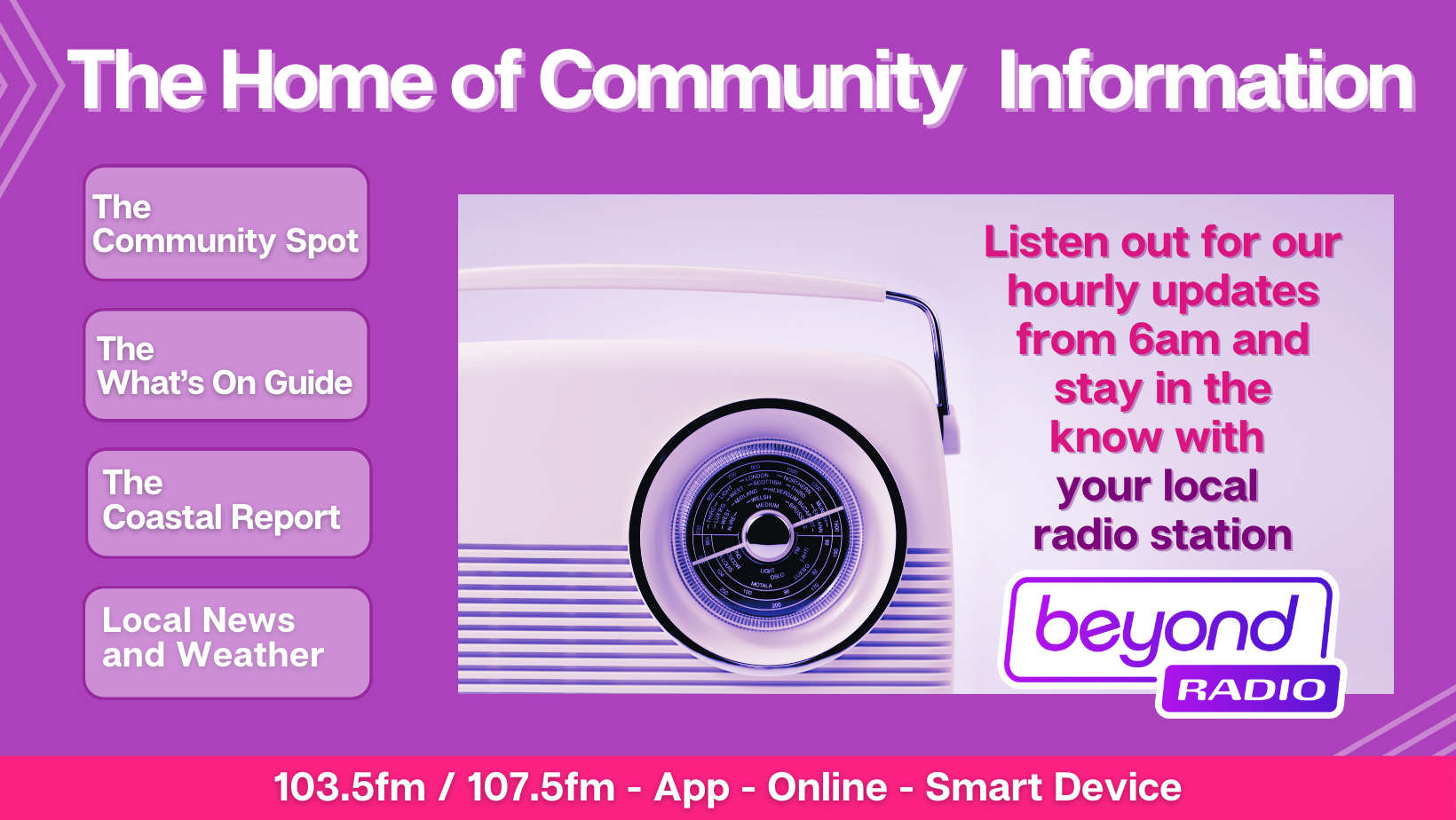 Listen out for our community information throughout the day on your Local Radio Station