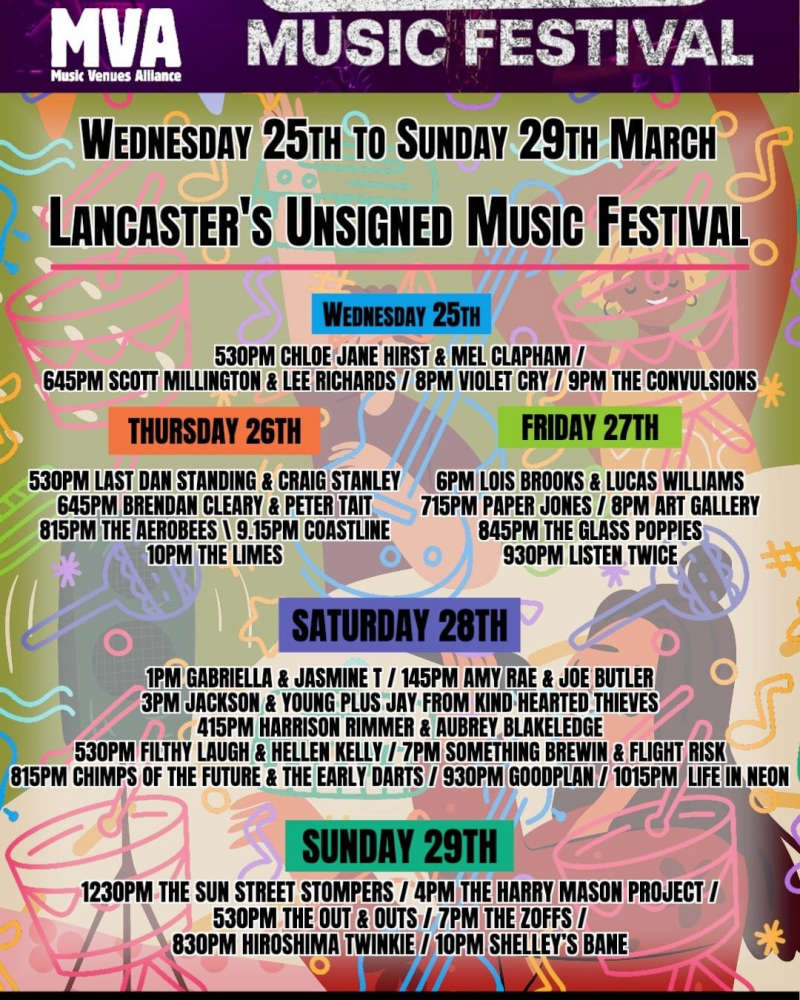 Lancaster's Unsigned Festival, brought to you by the Tap House, will be five days of live music featuring some of the best unsigned music talent from the Lancaster and Morecambe District and beyond.