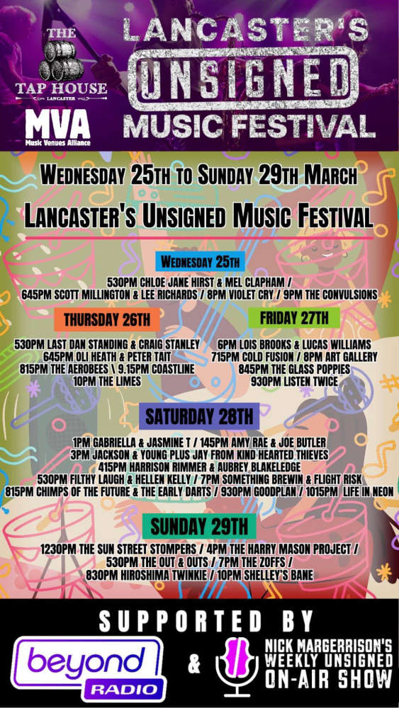Lancaster's Unsigned Music Festival is supported by Beyond Radio, and our weekly Unsigned Show with Nick Margerrison.