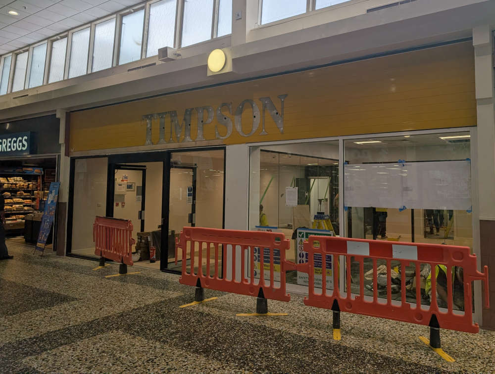 The old Timpson sign has been revealed as work takes place, see below.