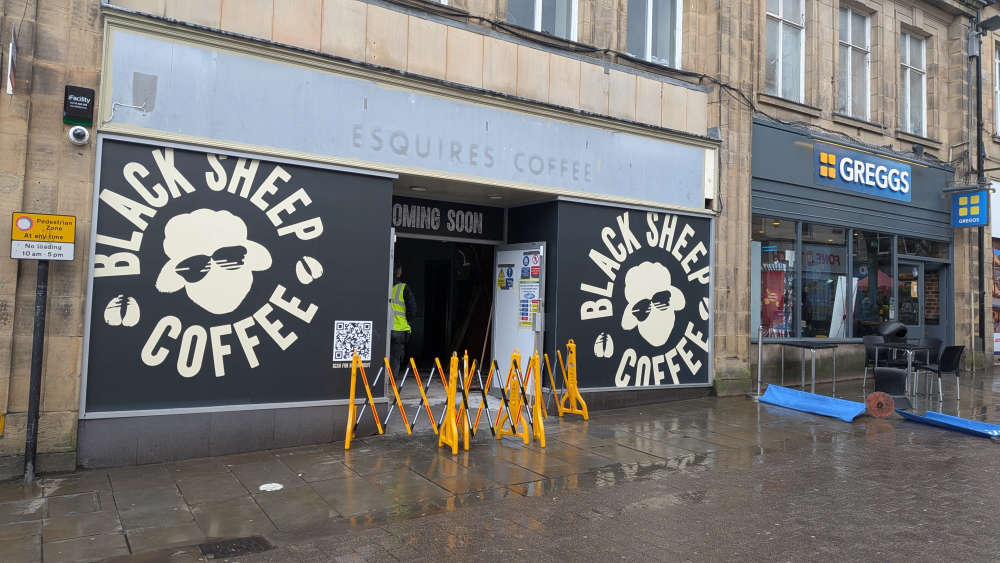 Signs outside the premises say 'Black Sheep Coffee - Coming Soon'.