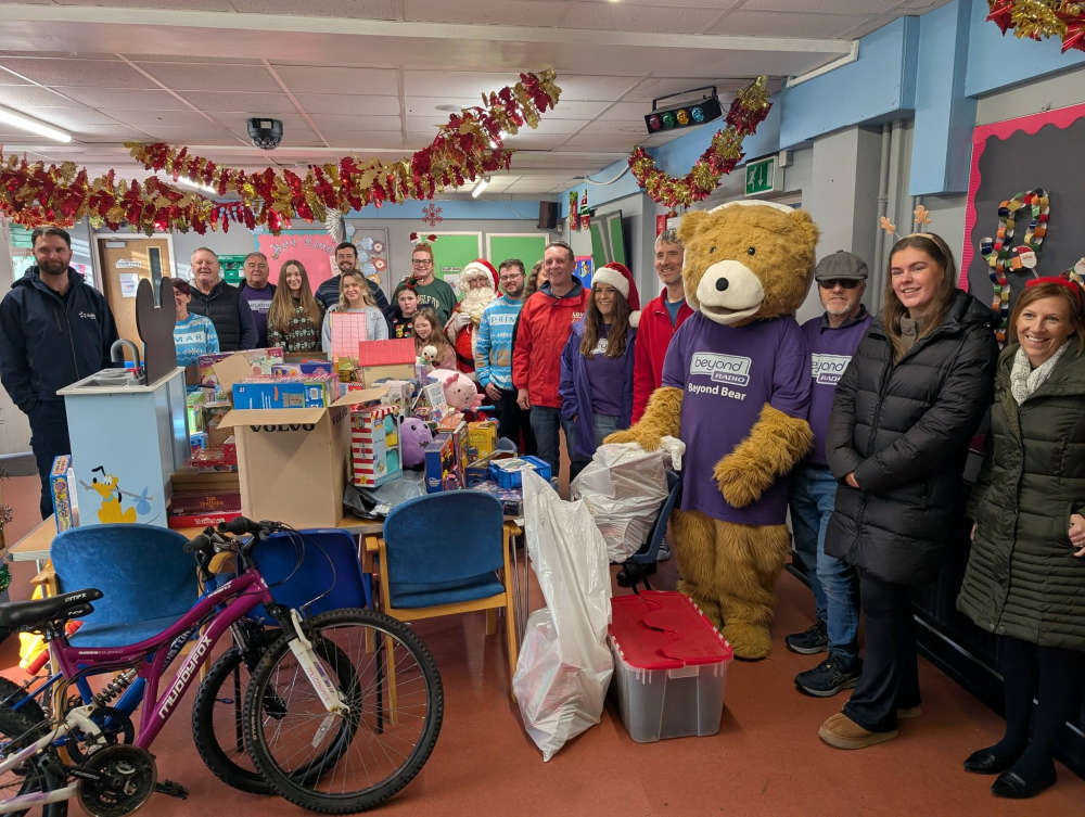 The Beyond Radio team of Duncan Moore, Greg Lambert, Roy Ward, Beth Pipe, Sarah Brown and of course, Beyond Bear, joined the BID team, supporters, sponsors and Father Christmas, in delivering to four of these organisations on Tuesday.