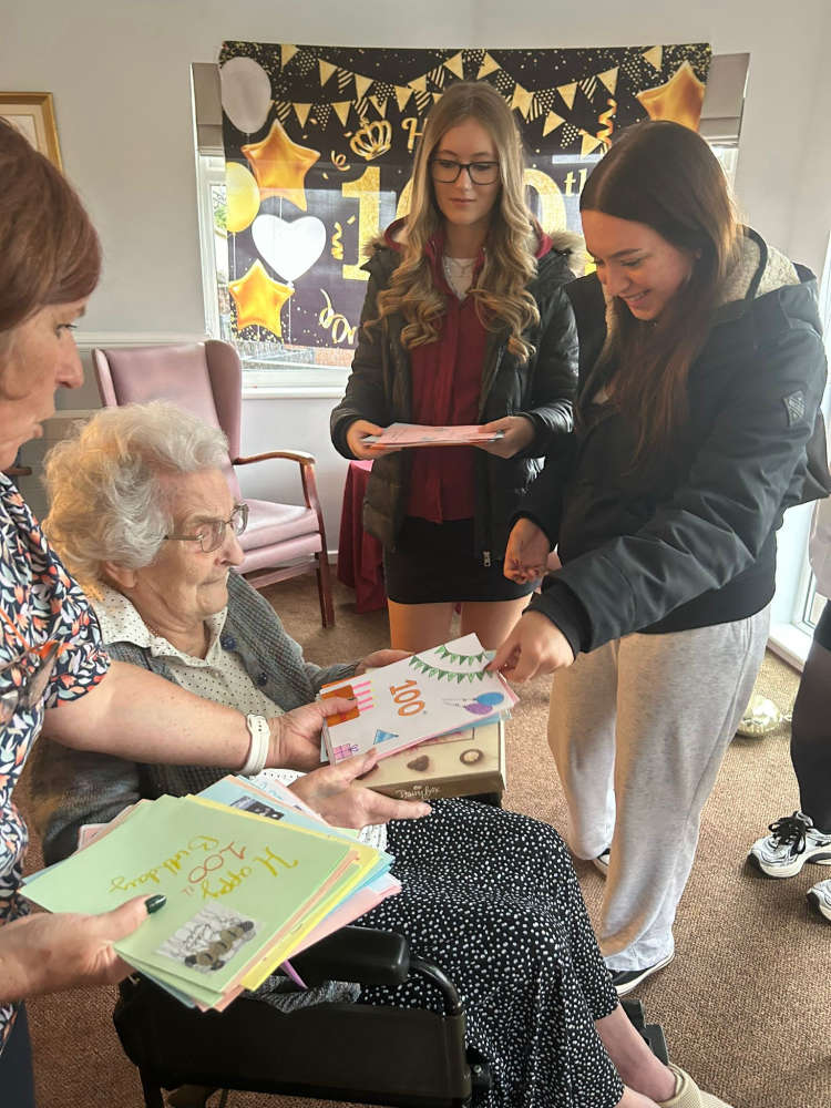 Another surprise for Irene was a group of students from Morecambe Bay Academy, who delivered her 100 handmade birthday cards.