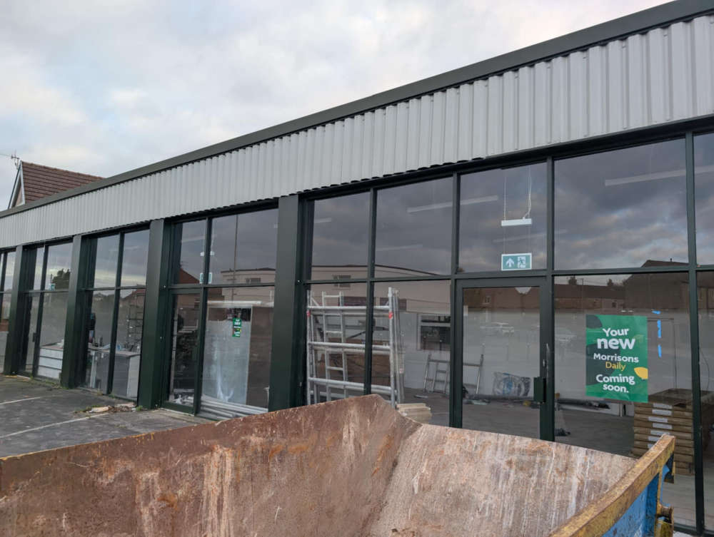 A sign has gone up announcing the opening of a new Morrisons Daily on a main road between Morecambe and Lancaster.