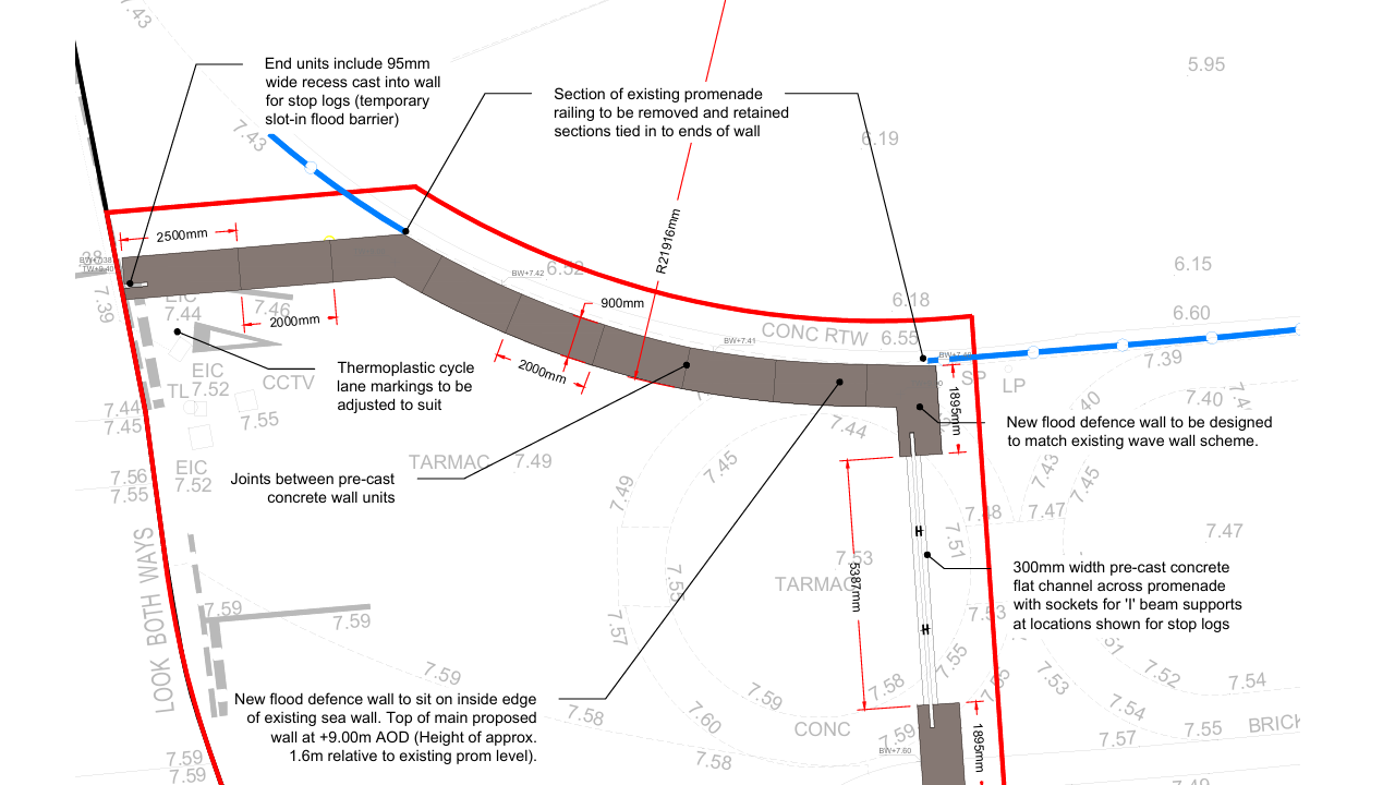 Below, an example of existing flood wall defences on the Promenade